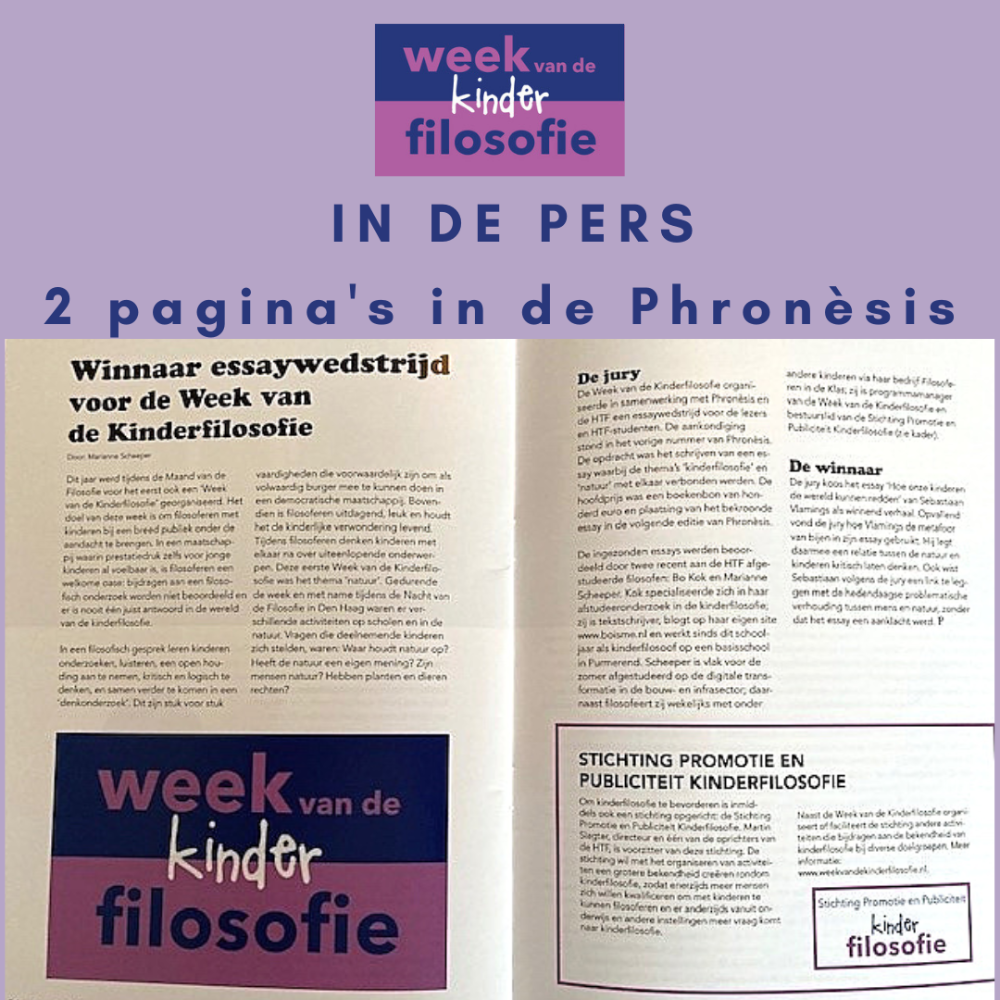 In de meest recente Phronèsis, het vakblad voor toegepaste filosofie, werd uitgebreid aandacht besteed aan de Week van de Kinderfilosofie. In ...