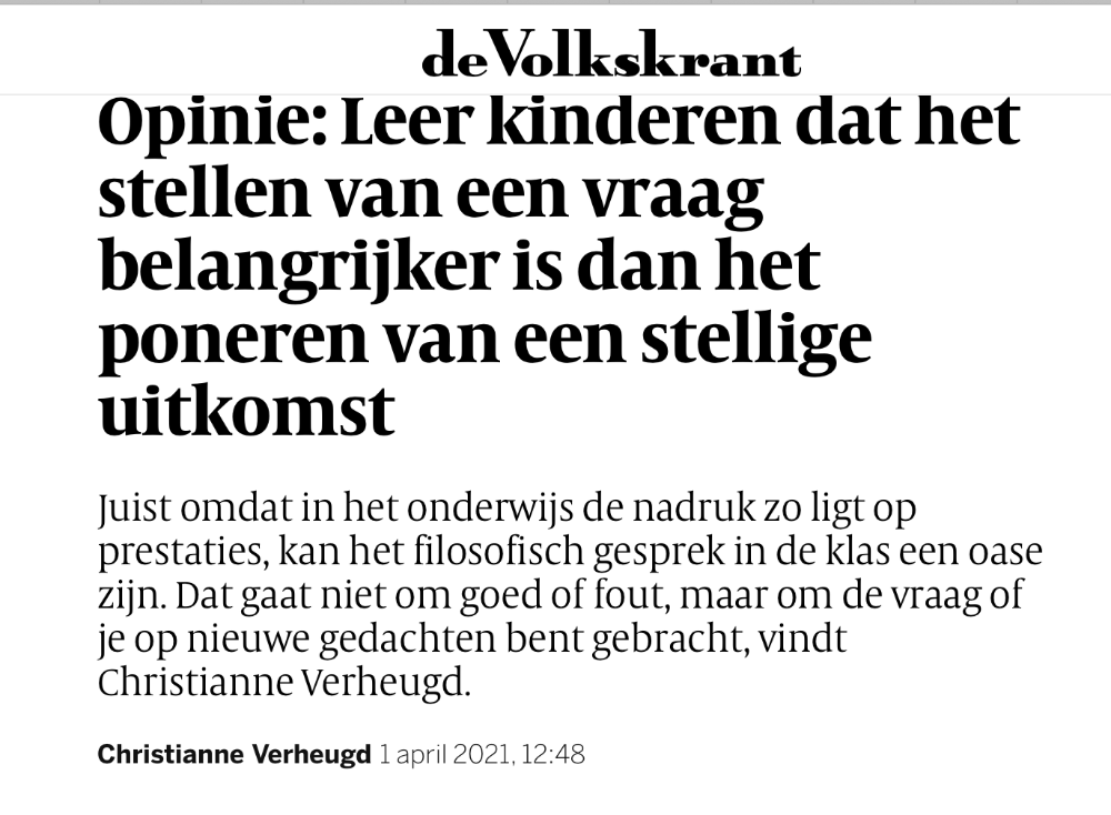 Zowel in Trouw als bij de Nieuw BV op Radio 1 werd aandacht besteed aan de Week van de Kinderfilosofie. Beiden maakten een mooie combinatie van...